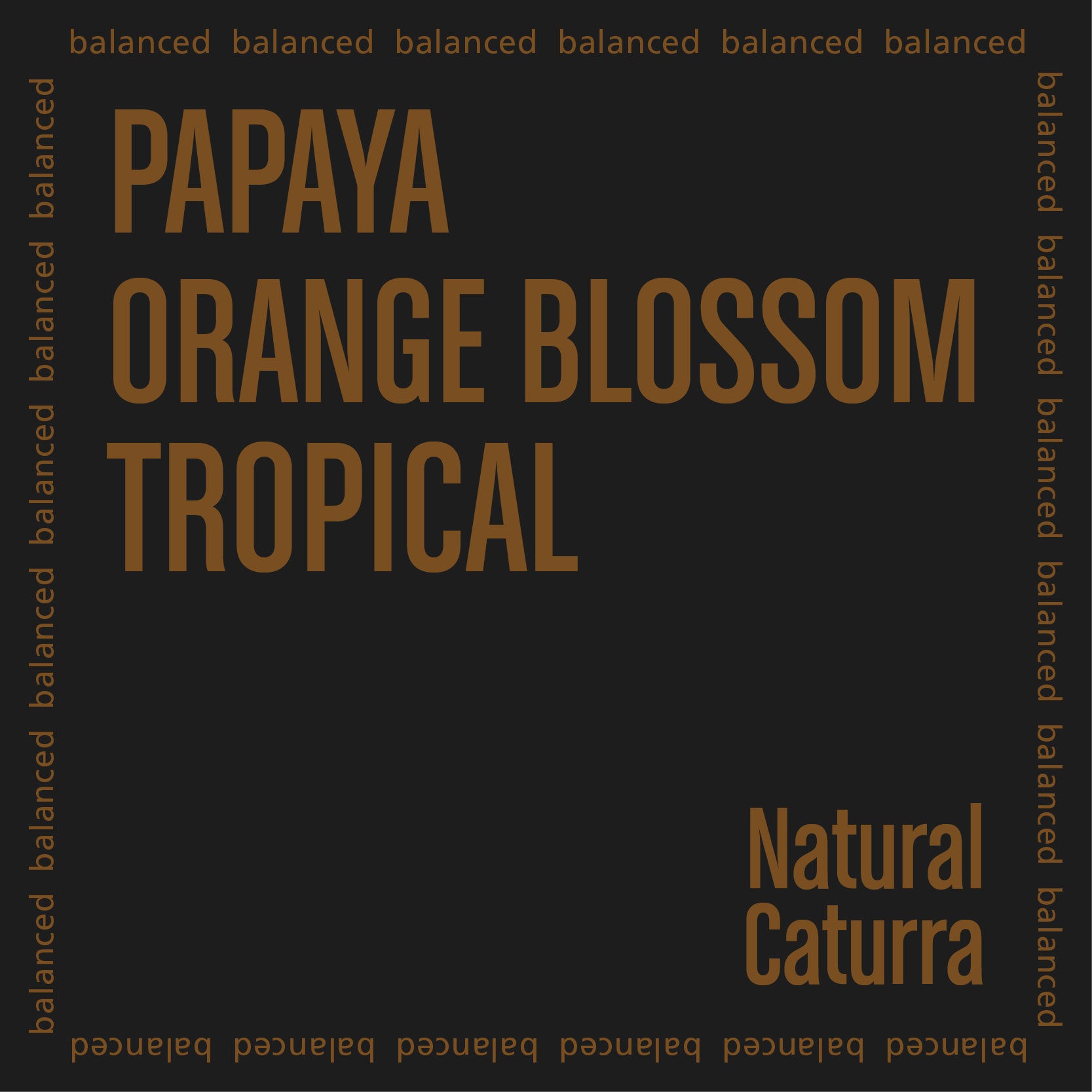 Das ist eine komplexe Tasse, die das Beste des natürlichen Prozesses bietet. Das Profil ist saftig und tropisch, mit reichlich Süße. Noten von Papaya und Mango kommen zuerst, unterstrichen von duftenden Orangenblüten. Wenn sie abkühlt, erinnert die anhaltende Süße an Nougat und kandierte Früchte.