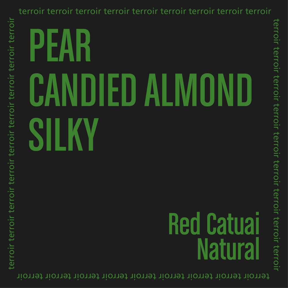 This Red Catuai is sweet and balanced, with the gentle acidity we expect from the Brazilian terroir. Notes of plum, pear, and subtle topical fruit come first. The profile is velvety on the palate, with the lasting sweetness of candied almond and dark chocolate.