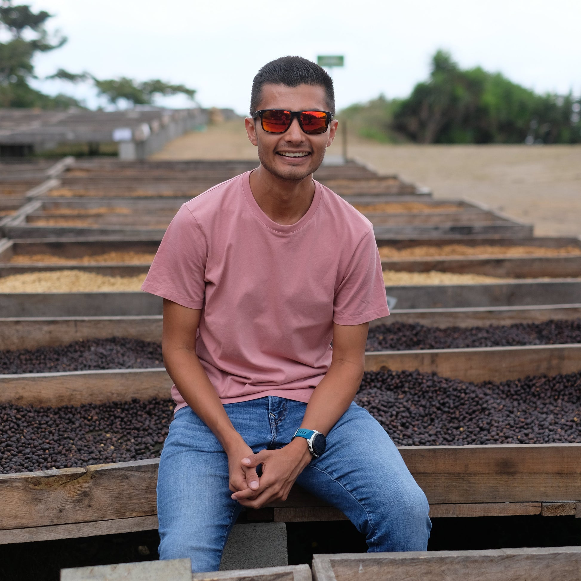 At 1400 metres above sea level, Los Pirineos sits on volcanic slopes amongst lush forest. The microclimate around the volcano provides sun-filled days and cool breezes that are ideal for growing and drying. In the drying area of the farm, raised beds are positioned between two peaks which consistently channel the wind across the drying coffee. With twelve hours of sun per day, this creates an ideal environment for Honey and Natural processing.