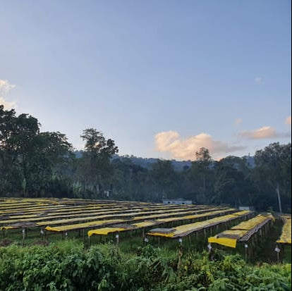 The Edido farmers harvest their coffee and deliver the cherries to the washing station on the same day. They are then de-pulped and fermented in open tanks for 8–12 hours. The cherries are then washed in water channels to remove the mucilage. The beans will then be spread on raised beds to dry for 5–15 days, depending on the weather.
