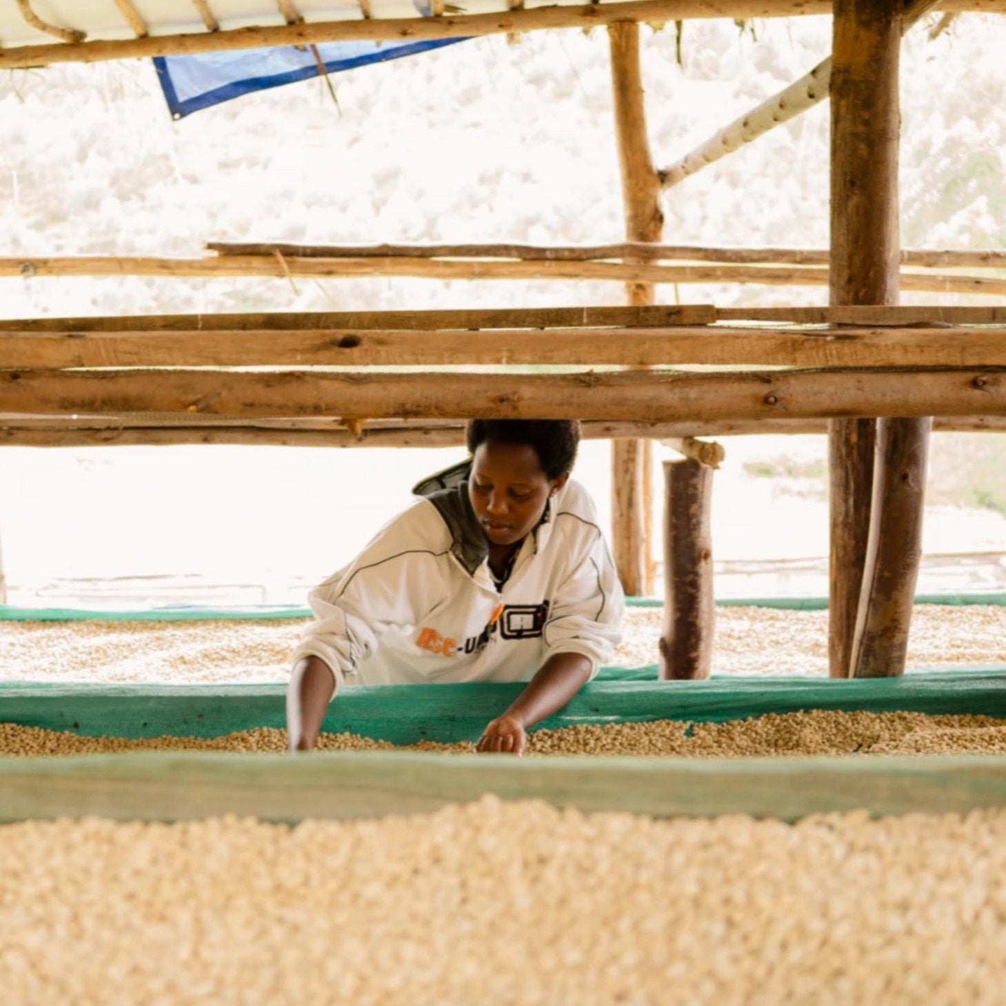 The traditional Burundian process is fully washed: freshly harvested cherries are delivered by coffee farmers to the washing station, then floated and hand-sorted for ripeness upon arrival. The cherries are pulped and undergo a single fermentation process. Parchment spends around twelve hours dry fermenting, before the final washing that creates a clean, balanced profile.