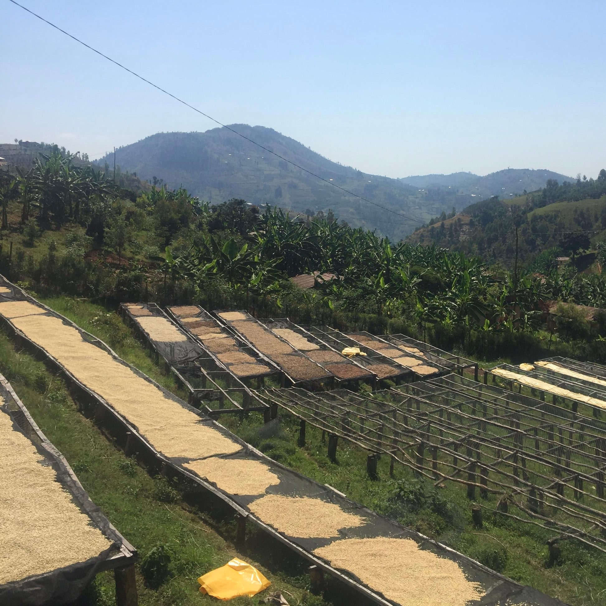 In Rwanda, the prevailing cool climate throughout the season plays a pivotal role in controlling the fermentation process. First, the skin, pulp, and approximately 70% of the mucilage are removed. The coffee is then dry fermented for 10-12 hours. After this, the parchment is graded and washed in channels, followed by a separation into two grades based on density. It is then soaked in clean water tanks for 16 hours. The beans are laid out on African drying beds for a span of up to 21 days. Throughout this period, they are covered by shade nets during the hottest hours, at night, and whenever it rains.